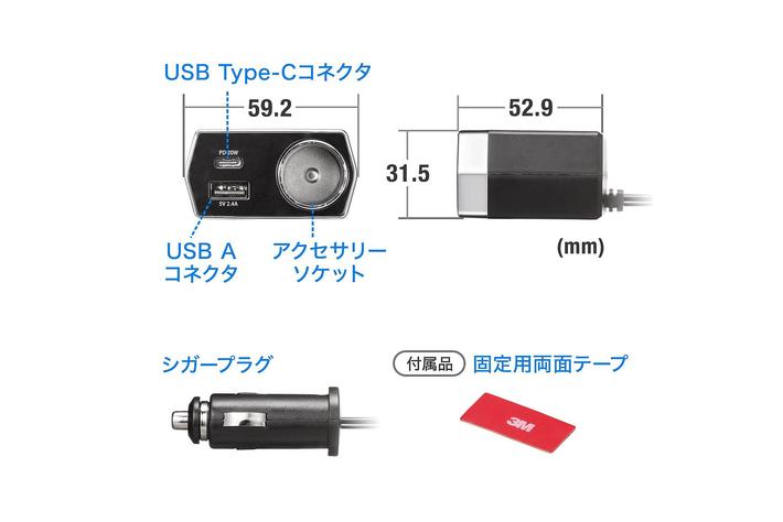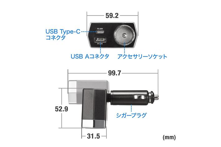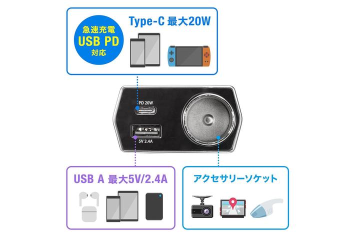 ソケット付き車載充電器(USB PD20W Type-C+USB A)