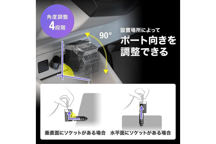 「CAR-CHR81CPD」はソケット直刺しタイプで、ポートの向きを4段階で角度調節できます。
