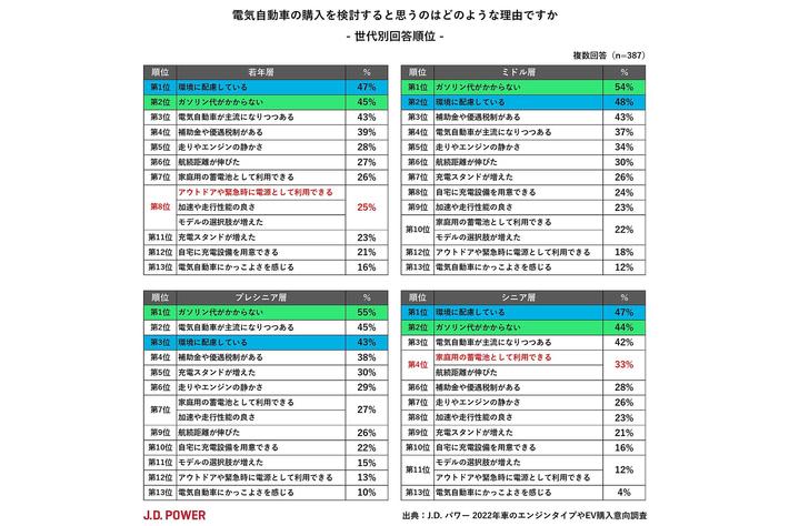 若年層・シニア層は「環境性能」重視、ミドル層・プレシニア層は「ラニングコスト」重視