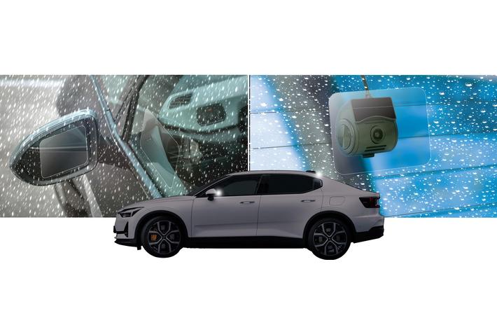 KEIYO新商品 雨天時のドラレコやデジタルミラーの後方映像をしっかり確保できる超親水フィルム「雨ミエ」発売!