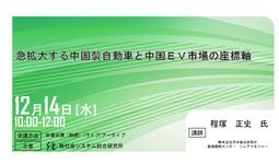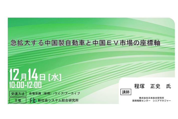 「急拡大する中国製自動車EVの座標軸」と題して株式会社日本総合研究所 程塚 正史氏のセミナーを2022年12月14日(水)に開催!!