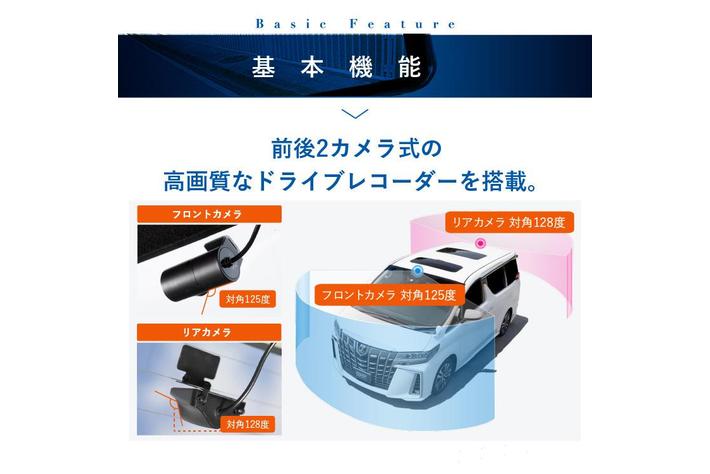 前後2カメラのハイビジョン高画質のドライブレコーダーを搭載。基本的な常時前後録画、衝撃センサーによるファイル保護機能、HDR/WDR、地デジノイズ対応、LED信号機対応などドラレコの基本機能はしっかり搭載。それに加え、デジタルミラーではトップクラスの高解像度IPS液晶(1920×380)をはじめ、純正ミラーからも違和感のない画角に調整できる20段階のズーム機能も搭載。