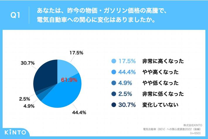 物価・ガソリン価格の高騰で、環境問題意識の高いドライバーの6割以上が電気自動車(BEV)への関心の高まりを実感