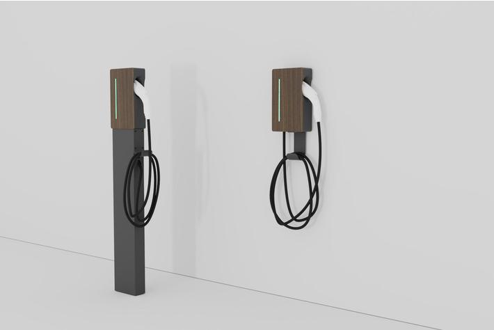 屋内駐車場など限られたスペースにも設置しやすい“壁かけ型”に加えて、オプションで“スタンド型”にも対応しています。また、専用アプリ「Myプラゴ」上で直感的な充電操作を促すことで、充電器本体の情報量を極限まで減らし、機能性と意匠性を両立させました。