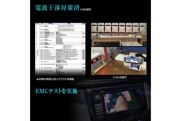 地デジの受信やナビのGPS受信などに影響を与えないよう、基盤部、リアカメラ、電源ケーブルなどにノイズ対策を行っています。