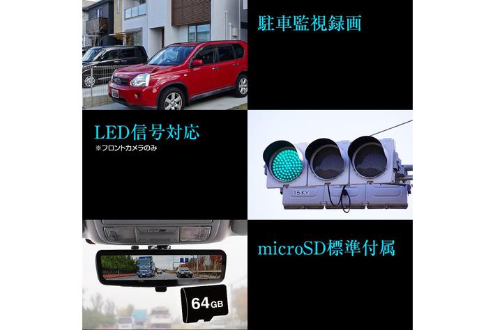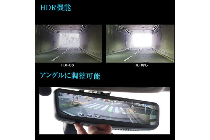 フロントカメラ1920×1080pixel(フルHD)、リアカメラ1920×384pixel(ミラー表示範囲)の高解像度録画。