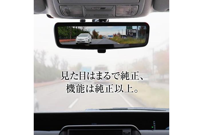 ミラー本体は純正品と交換しても違和感のないスタイリッシュな外観、 純正品では採用実績の少ない前後同時ドライブレコーダー機能も付いたデジタルルームミラー