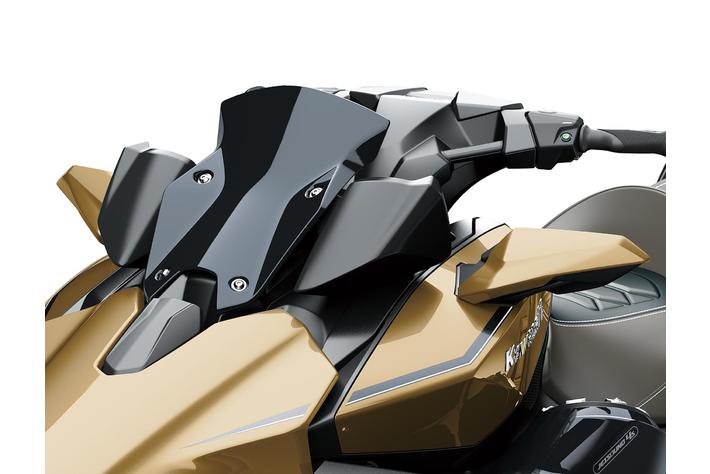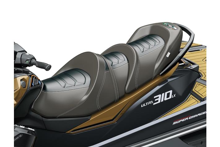 最大出力300PSを誇るスーパーチャージャー付きエンジンを搭載した”JET SKI”が、高級感あふれるスタイリングとさらなる快適性を備え登場。さまざまなコンディションで他にはまねできない思い通りのライディングを提供します。”JET SKI ULTRA 310LX-S”は、エキサイティングな乗り味を確保しつつ広々とした足元スペースとリヤデッキを実現。快適性、装備の充実を追求しています。また、減速システム付きリバースシステムKSRDに加え、イージーアクセスストレージ、リヤビューカメラを採用。コックピットの大型TFTディスプレイには、さまざまな情報を見やすく表示します。加えてバンパーに組み込まれたスタイリッシュなLEDアクセントライトが、確立された存在感と高級感を放っています。