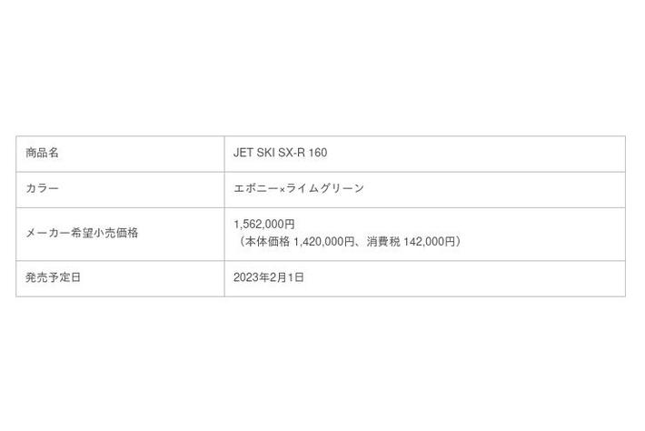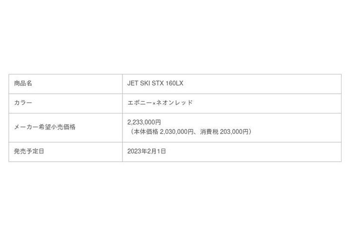 株式会社カワサキモータースジャパン(本社:兵庫県明石市、代表取締役社長:桐野 英子)は、2023年モデル「JET SKI ULTRA 310LXシリーズ」「JET SKI STX 160シリーズ」「JET SKI SX-R 160」を2023年2月1日(水)に発売いたします。