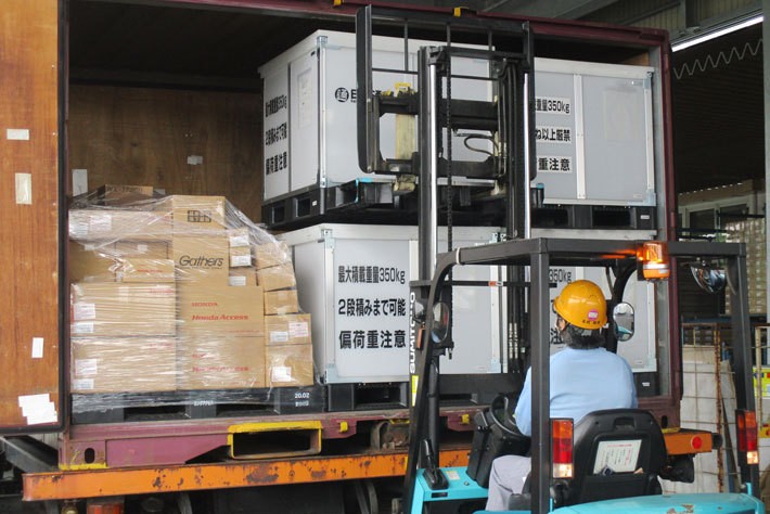 輸送用プロテクトボックス、パレットの導入で荷役作業を大幅に短縮