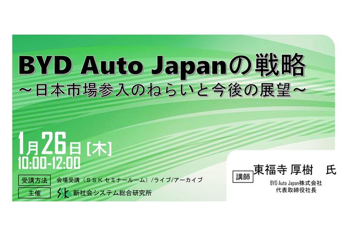 「BYD Auto Japanの戦略」と題してBYD Auto Japan株式会社 代表取締役社長 東福寺 厚樹 氏のセミナーを2023年1月26日(木)に開催!!