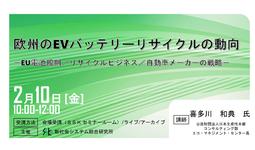 「欧州のEVバッテリーリサイクルの動向」と題して公益財団法人日本生産性本部 コンサルティング部 エコ・マネジメント・センター長 喜多川 和典氏のセミナーを2023年2月10日(金)に開催!!