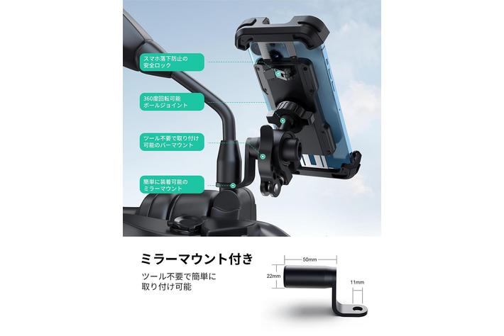 【Lamicall】最新版バイク用スマホホルダーが販売!でこぼこ道でも安定!ミラーマウント付き!【楽天市場】