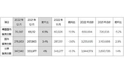・2022年12月グローバルで、347,340台販売、前年同月比4%増