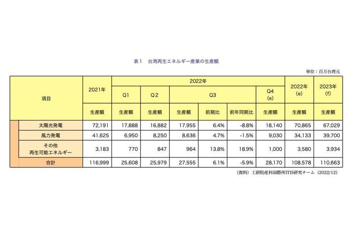 風力発電用システム、補助設備の生産額も前年同期を大きく下回っている。以上の理由により、台湾風力発電産業の22年通年の生産額は前年比18%減の341億3000万元となる見通しだ。(続く)