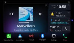 iPhoneやスマートフォンを接続するだけで、「Apple CarPlay」や「Android Auto」対応アプリを本体ディスプレイに表示し、タッチパネルで直感的に操作できます※1、2。ナビアプリを大画面に表示しカーナビとして使用できるほか、SiriまたはGoogleアシスタントによる音声制御もサポートしており、走行中でも画面を注視せずに目的地の検索や音楽再生、ハンズフリー通話、テキストメッセージ送信などを行えます。また、「Apple CarPlay」「Android Auto」使用時に、画面を切り換えることなくオーディオソースをコントロールできる「分割画面表示」にも対応しています。