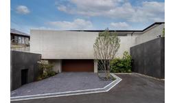 君塚氏コメント:この住宅最大の魅力になっている前面の一枚壁は、絵画のように切り取られたガレージ空間とそこに置かれた車を引き立たせており、インナーガレージとは違う、外に開かれた魅せるガレージをもつ住宅として魅力的でした。またこの壁は、プライバシーの守られた中庭やエントランスをつくるとともに、室内から望む美しい庭の背景にもなり、用と美を兼ねたプランも秀逸でした。