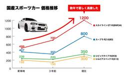 その影響は日本国内でも現れ始めています。高年式車両から価格の下落が見られており、その後旧車領域にも影響を及ぼすことが考えられます。