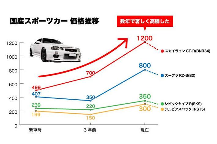 旧車はここ数年で価格の高騰が著しく、新車価格の2倍、3倍まで価格が上がったものもありプレミア価格がついているものもしばしば見受けられます。