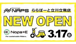 オートバイ用品の小売・開発を行う株式会社ナップス(本社:神奈川県横浜市、代表取締役:望月 真裕)は、オートバイ用品店「ナップスららぽーと立川立飛店」(所在地:東京都立川市泉町935-1 ららぽーと立川立飛2階)を2023年3月17日(金)に新規オープンすることをお知らせいたします。