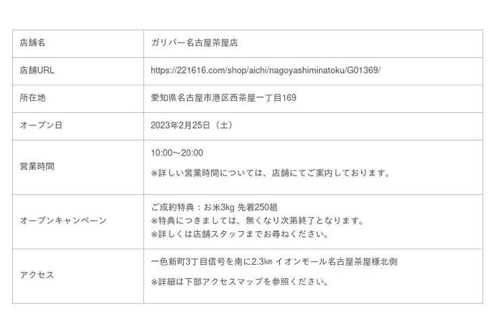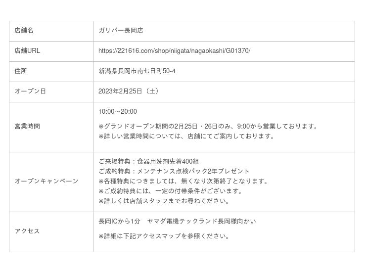 「ガリバー名古屋茶屋店」、「ガリバー長岡店」 店舗情報