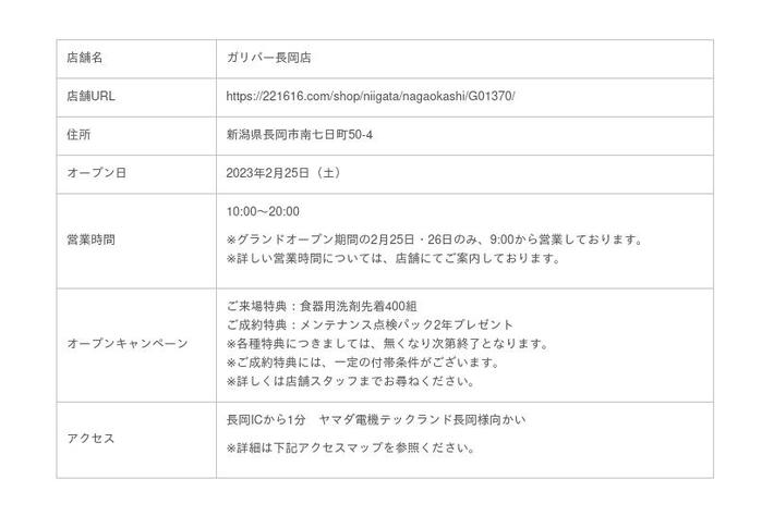 「ガリバー名古屋茶屋店」「ガリバー長岡店」ではグランドオープンを記念し、ご来場・ご成約いただいたお客様に向けてキャンペーンの実施を予定しております。詳しくは、店舗スタッフにお問い合わせください。