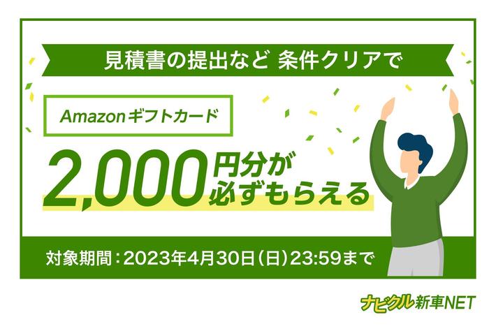 現在、ナビクル新車NETをご利用いただき、条件を満たした方にAmazonギフトカード2,000円分をプレゼントするキャンペーンを開催しています。サービス利用者の皆さまに、さらなるメリットをご提供するための取り組みです。