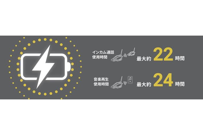 ※インカム通話使用時間:最大約22時間 音楽再生使用時間:最大約24時間