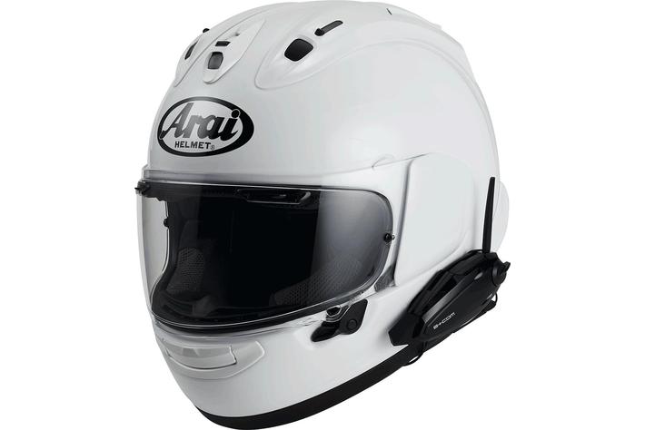 付属のアームマイクまたはワイヤーマイクを取付けることで、ヘルメットをかぶったままスマートフォンのハンズフリー通話着信に対応できます。ツーリング中に突然電話がかかってきても、ワンプッシュで通話応答することができるので、わざわざ停車してスマートフォンを取り出す必要はありません。
