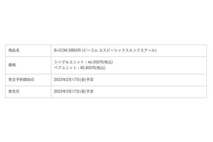 バイク用Bluetoothインカム「B+COM」シリーズ新製品<B+COM SB6XR>発売のご案内