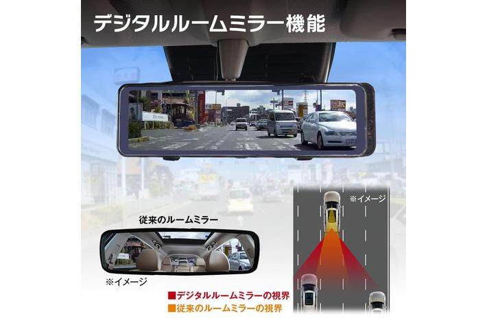 視界が遮られがちな従来のルームミラーと違い後方の広い範囲の状況を確認できます。