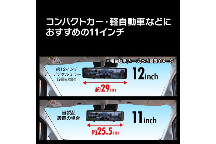 デジタルインナーミラーの主流は12インチタイプですが、コンパクトカーや軽自動車だとバイザーに干渉していまい使い勝手が悪く感じてしまいます。