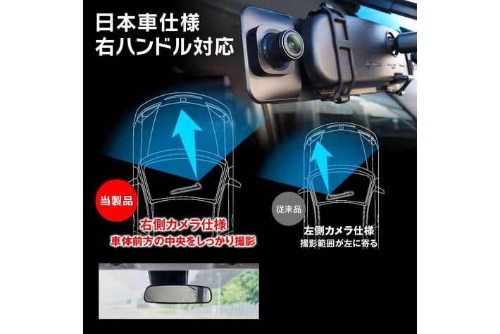 右ハンドル対応でミラーも見やすく撮影も運転者目線に。