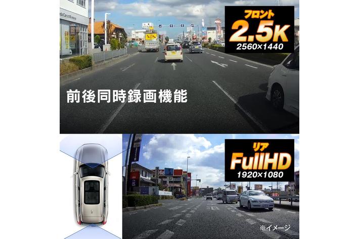 前方2560×1440pixel、後方1920×1080pixelの高画質で前後同時に滑らかな映像を記録。
