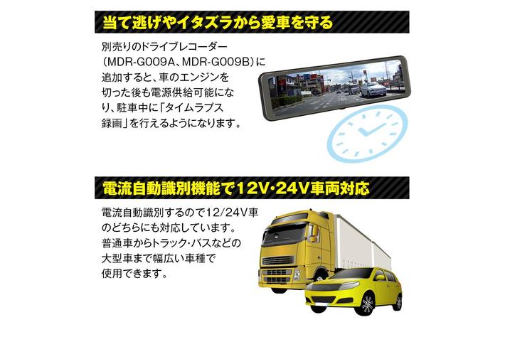 シガー電源入力電圧:DC12V/24V(※リバース連動線12V対応のみ)