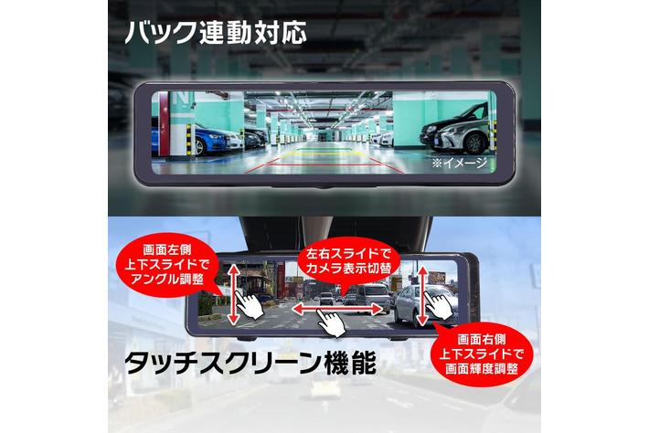 画面を指で上下左右にスライドして、フロント/リアカメラのアングルや、画面輝度の調整ができます。