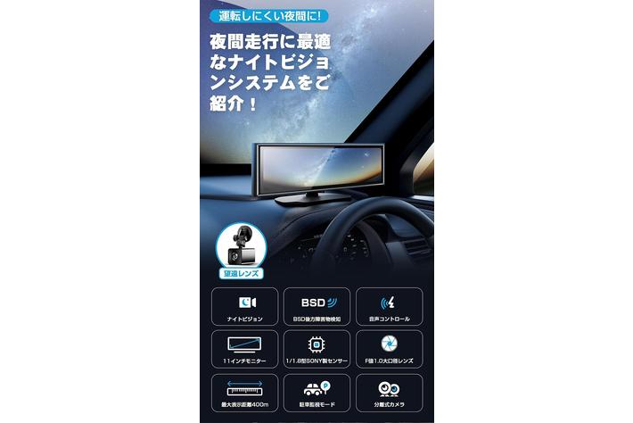 前後セパレートカメラ、取付位置自由!タッチパネル・音声コントロール。