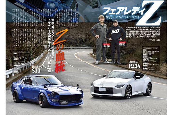 巻頭特集は、50年以上の長きに渡って世界中のファンから愛され続けているフェアレディZ。今月号の特集では、チューニングシーンで話題沸騰中の新型RZ34の情報に加えて、歴代モデルの進化の過程と、各時代のライバル車にも焦点を当てて振り返っていく。初代S30と最新RZ34の比較や、歴代モデルとそのライバルたちの物語、そして最新RZ34のチューニング適応度などを徹底的に掘り下げて、「Zらしさとは何か?」を探っていく。