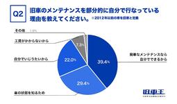 Q1で旧車のメンテナンスを「部分的に自分で行なっている」と回答した方にその理由について聞いてみると、最も多い回答が「簡単なメンテナンスなら自分でできるから」で、39.4%でした。
