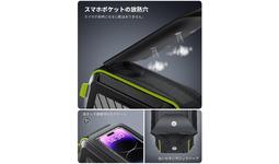 バッグ上部にスマートフォンを設置できる専用ポケットが付いています。ポケットの放熱穴は、スマホの放熱効果を高めるのに最適です。4~7インチのスマートフォンを収納でき、バッグを開けることなく画面を確認、操作できます。タッチスクリーン部分にはTPU素材を採用しました。TPU素材は十分な柔軟性を持ちながらもシリコンよりも硬く、スマートフォンをしっかりホールド。画面がクリアに見えるだけでなく、滑らかな手触りと高感度タッチを実現しています。