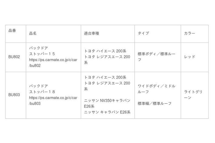 ・付属品:バックドアストッパー18(BU803)、固定用ハイグレードベルト(1m×2本、2.2m×2本)