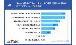 メンテナンス頻度の増加理由、7割以上が「欲しいモデルが品薄で、買い替えができないため」や「バイク車体価格が高く、買い替えができないため」と回答