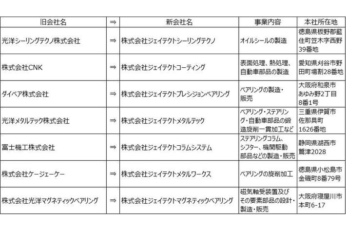 株式会社ジェイテクト(本社:愛知県刈谷市、取締役社長:佐藤和弘、以下「ジェイテクト」)の国内グループ会社7社は、2023年4月1日に「ジェイテクト」を冠した社名に変更いたします。