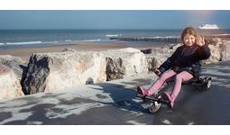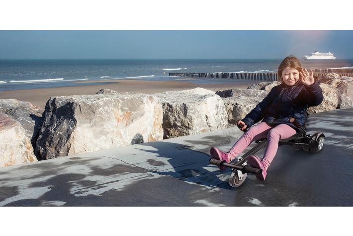 足の重心移動で運転をコントロールする立ち乗りとは違い、ハンドルで運転操作し座って乗ることができるので、お子様 も簡単に楽しくバランスボードを乗りこなして頂けます。