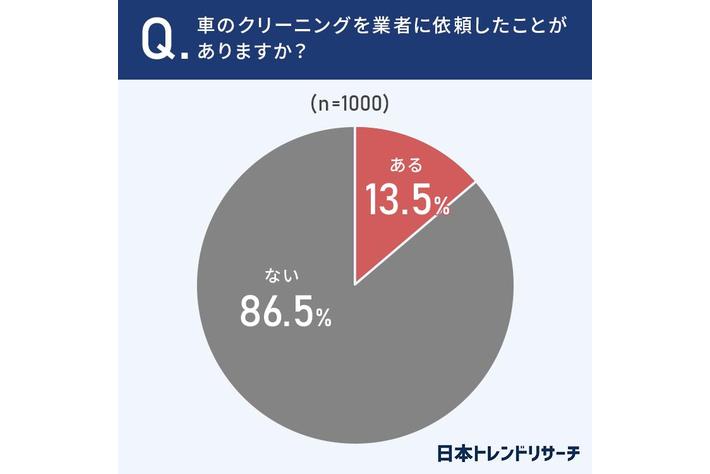 13.5%が、車のクリーニングを業者に依頼したことが「ある」と回答しました。