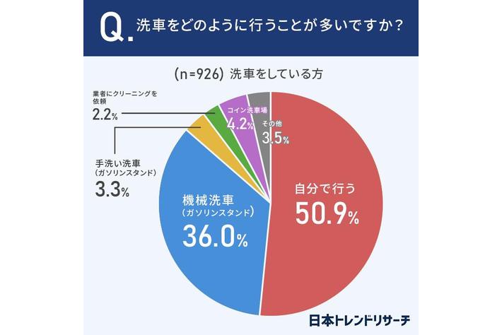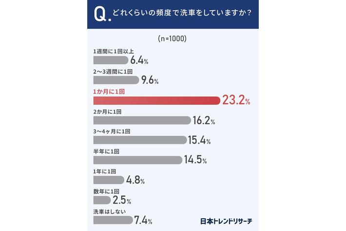 現在車を所持している23.2%が「1か月に1回」で、50.9%が「自分で洗車している」と答えました。