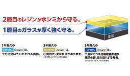 キーパーのボディガラスコーティング「クリスタルキーパー」「ダイヤモンドキーパー」「Wダイヤモンドキーパー」は、従来のポリシラザン系ガラスコーティングとは異なり、塗装の劣化が進行していない限り、経年車であっても研磨不要で驚きのツヤを出すことができます。一般的なコーティングよりも遥かに厚く柔軟なWの透明被膜を施工することができ、 雨風や雪にも強く、また洗車機での洗車も可能です。