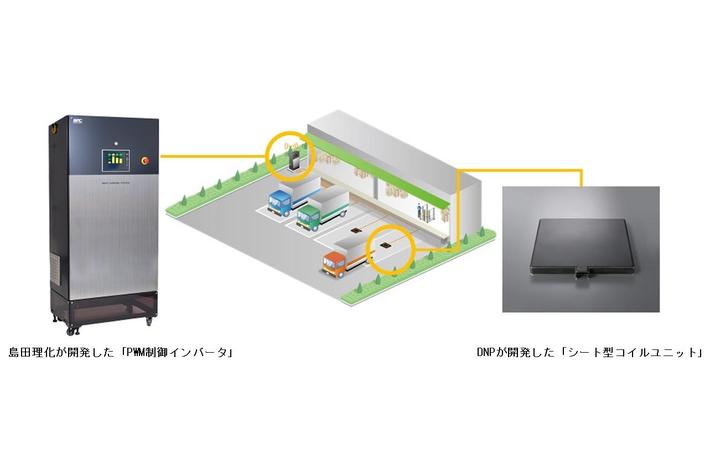 大日本印刷株式会社(以下、DNP)と島田理化工業株式会社(以下、島田理化)は、電気自動車(以下、EV)用ワイヤレス給電の実用化に向けて、実証実験装置を共同開発しました。