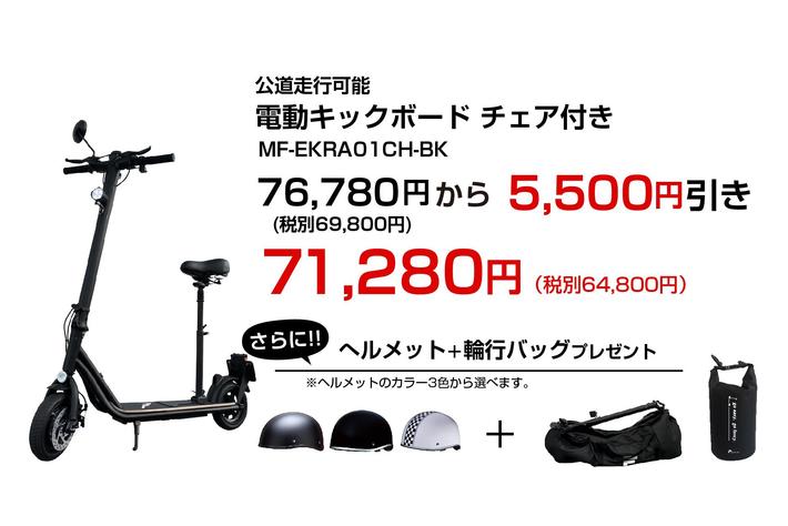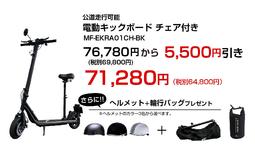 安定した走行感が魅力の公道走行対応モデル チェア付き電動キックボード MF-EKRA01CH-BK 通常価格 76,780円(税込)→特別価格71,280円(税込)