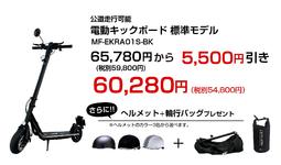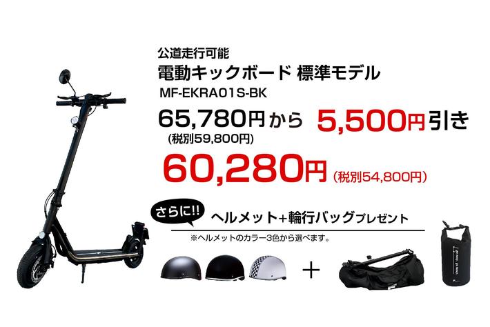 最もスタンダードで運転操作がシンプルな公道対応モデル 電動キックボード MF-EKRA01S-BK 通常価格 65,780円(税込)→特別価格 60,280円(税込)